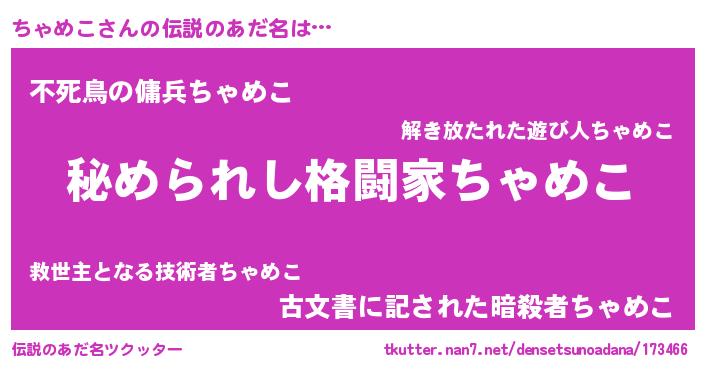 | 女子向けラノベタイトル風あだ名 | 『ちゃめこの雑貨屋さん』 |