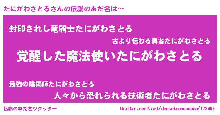 | 意味不明あだ名 | 『とにかく怪しいたにがわさとる』 |