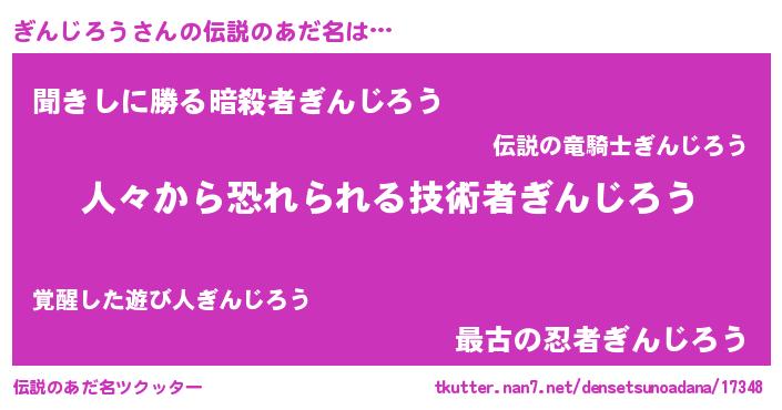 | ヒーロー風カッコイイあだ名 | 『正義の使者ぎんじろう』 |