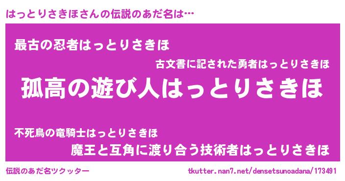 | 意味不明あだ名 | 『自称はっとりさきほ』 |