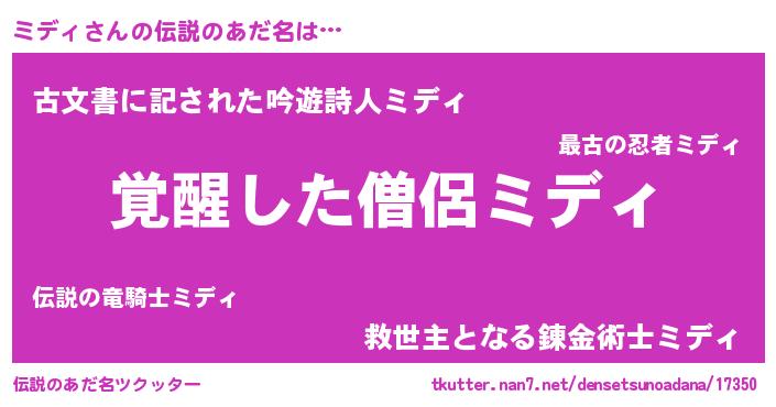 | 意味不明あだ名 | 『住所不定無職ミディ(14歳)』『自称ミディ』 |