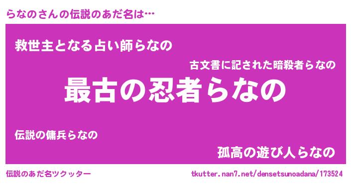 | 意味不明あだ名 | 『自称らなの』『らなのフォーエバー』 |