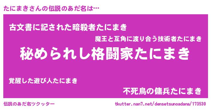 | 意味不明あだ名 | 『たにまきフォーエバー』『自称たにまき』 |