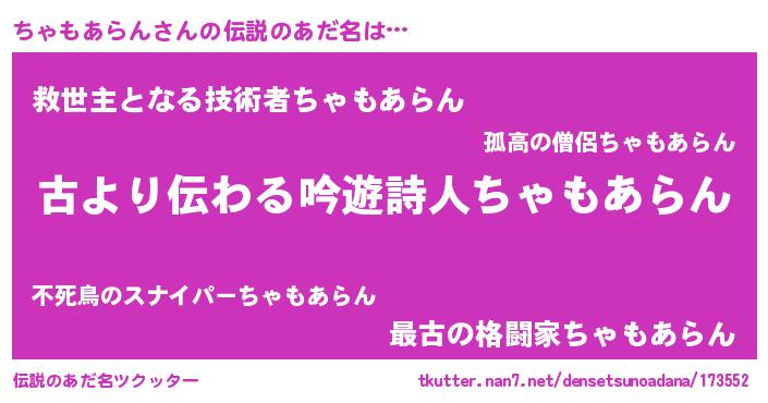 | ヘコむあだ名 | 『ちゃもあらん(小並感)』『レバニラ』 |
