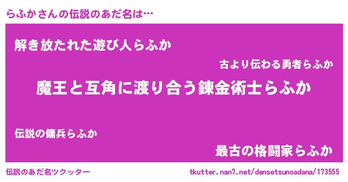 | 胡散臭い通販商品みたいなあだ名 | 『お金では代えられない隕石のかけら…その名も「らふか」』 |