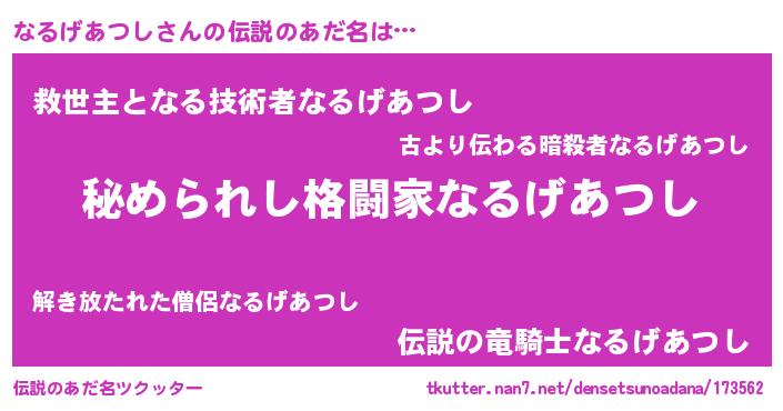 | 意味不明あだ名 | 『なるげあつしフォーエバー』 |