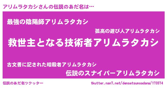 肩書あだ名 | 『アリムラタカシ助教授』 |