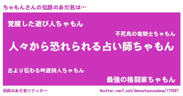 | ヒーロー風カッコイイあだ名 | 『正義の使者ちゃもん』『炎刃騎士チャ』 |