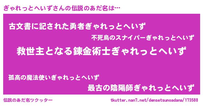 | 欧米人風あだ名 | 『ダレノガレぎゃれっとへいず』 |