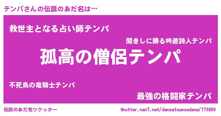 | ヒーロー風カッコイイあだ名 | 『超時空戦士テンパ』『幻影騎士テン』 |