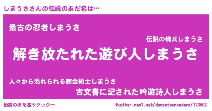 | 胡散臭い通販商品みたいなあだ名 | 『伝統あるペンダント…その名も「しまうさ」』 |