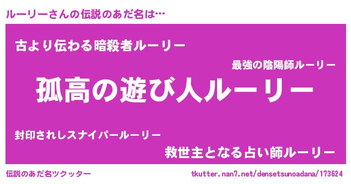 | 男性向けラノベタイトル風あだ名 | 『ダンジョンにルーリーを求めるのは間違っているだろうか』 |