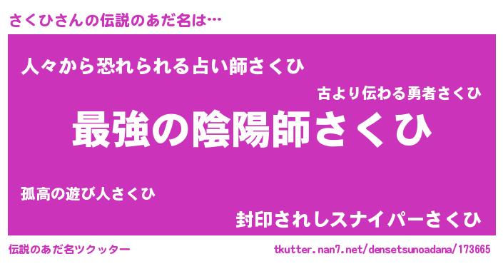| ヒーロー風カッコイイあだ名 | 『ウルトラさくひマン』『最強戦士サクヒ』 |