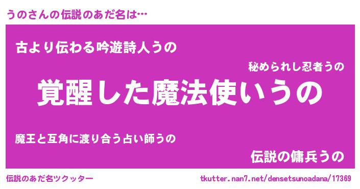| ヘコむあだ名 | 『うのを』『うの(小並感)』 |