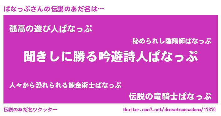 | 意味不明あだ名 | 『永久保存ぱなっぷ』『自称ぱなっぷ』 |