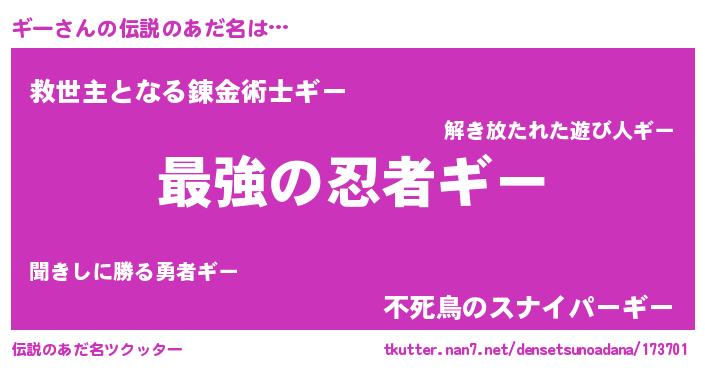 | ファンタジー風あだ名 | 『ゼギートゥ』『エターナルギーー』 |