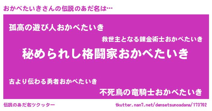 | 意味不明あだ名 | 『自称おかべたいき』 |