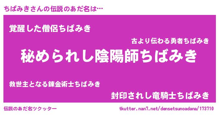 | ヒーロー風カッコイイあだ名 | 『超時空戦士チバミキ』『炎刃騎士チバ』 |