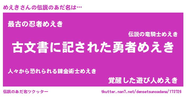 | ヒーロー風カッコイイあだ名 | 『ネオメエキ』『サイバー戦士メエキ』 |