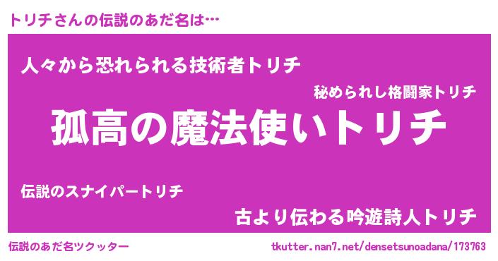 | ポケモン風あだ名 | 『ヒトリチ』『トーリイ』『トリゴンZ』 |