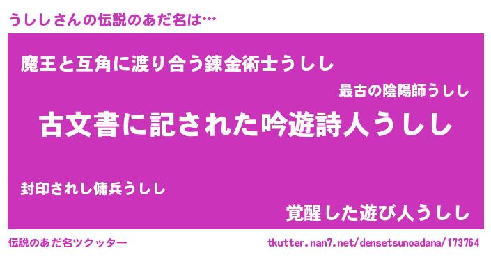 | ヒーロー風カッコイイあだ名 | 『ネオウシシ』『仮面ウシダー』 |
