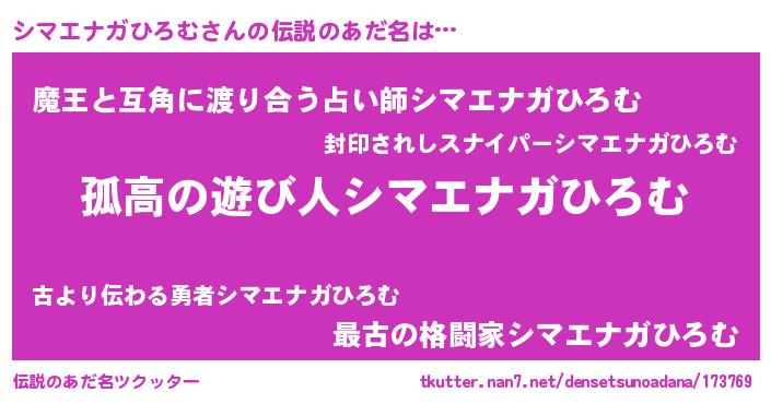 | ピコ太郎風あだ名 | 『シマ六郎』『シシ太郎』『ピシ太郎』 |