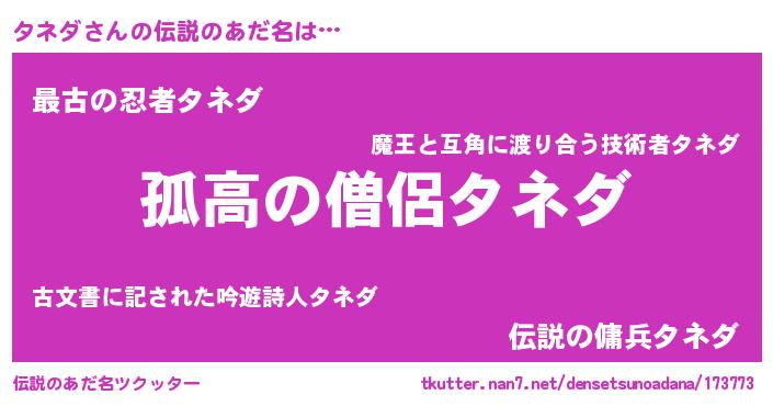 | ヒーロー風カッコイイあだ名 | 『暗黒騎士タネ』『ウルトラタネダマン』 |