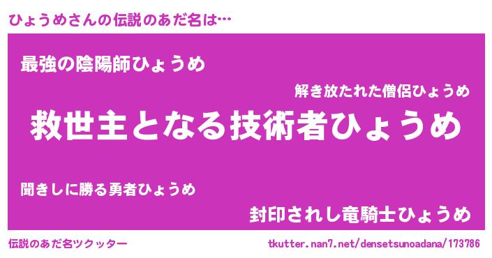 | 意味不明あだ名 | 『自称ひょうめ』『ニラ科ひょうめ属』 |