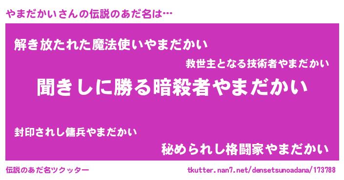| 胡散臭い通販商品みたいなあだ名 | 『絶対に幸福をもたらす健康食品…その名も「やまだかい」』 |