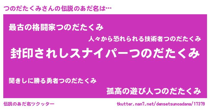 | 胡散臭い通販商品みたいなあだ名 | 『億万長者になれる霊験あらたかなお札…その名も「つのだたくみ」』 |