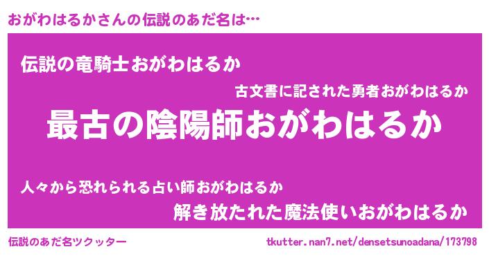 | 意味不明あだ名 | 『自称おがわはるか』 |