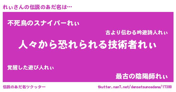 | 意味不明あだ名 | 『眠気覚ましガムれぃ味』『自称れぃ』 |