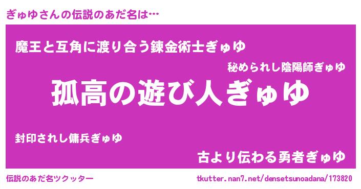 | ヒーロー風カッコイイあだ名 | 『超時空戦士ギュユ』『幻影騎士ギュ』 |