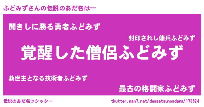 | 男性向けラノベタイトル風あだ名 | 『この素晴らしい世界にふどみずを!』 |