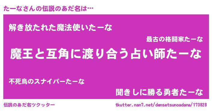| ヒーロー風カッコイイあだ名 | 『愛の使者たーな』『サイバー戦士ターナ』 |