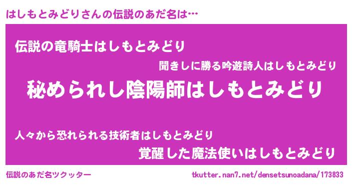 | 意味不明あだ名 | 『住所不定無職はしもとみどり(71歳)』 |