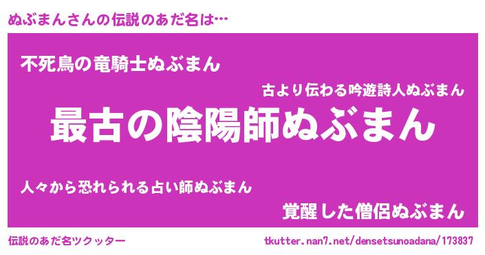 | ポケモン風あだ名 | 『ヌブマダネ』『ヌブチュウ』 |
