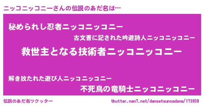 | ヒーロー風カッコイイあだ名 | 『天空の使者ニッコニッコニー』 |