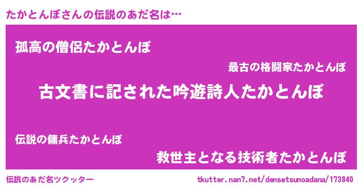 | ヒーロー風カッコイイあだ名 | 『ネオタカトンボ』『仮面タカダー』 |