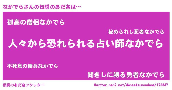 | ヘコむあだ名 | 『なかっ子』『なかでら(笑)』 |
