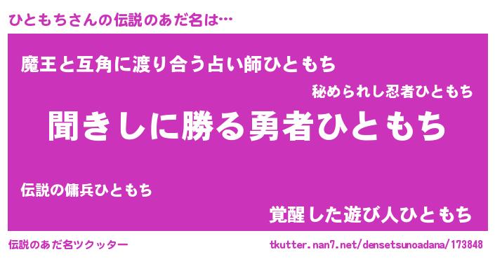 | ヒーロー風カッコイイあだ名 | 『ネオヒトモチ』『愛の使者ひともち』 |