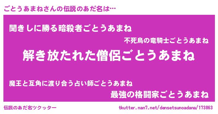 | 胡散臭い通販商品みたいなあだ名 | 『テレビで話題のアガリクス…その名も「ごとうあまね」』 |