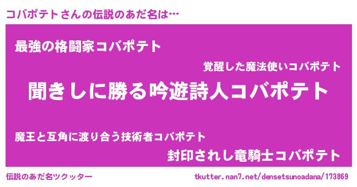 | 意味不明あだ名 | 『永久保存コバポテト』 |