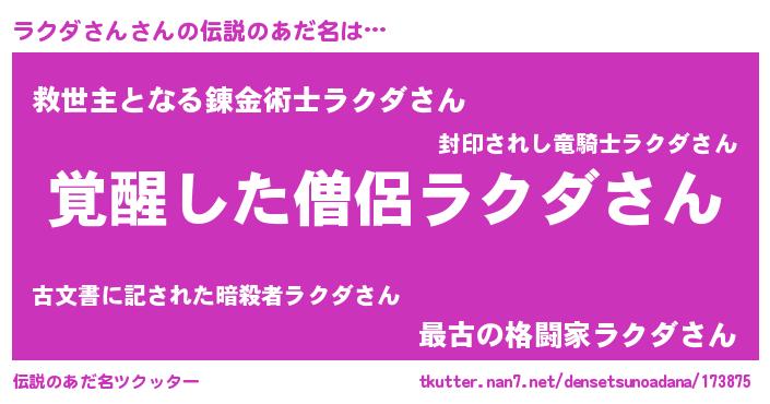 | ヘコむあだ名 | 『ラクっ子』『つくし』『ラクにゅー』 |