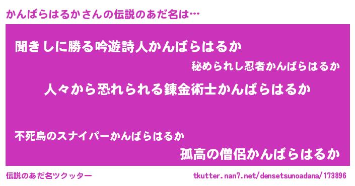 | ヘコむあだ名 | 『かんばらはるか(苦笑)』『かんを』 |