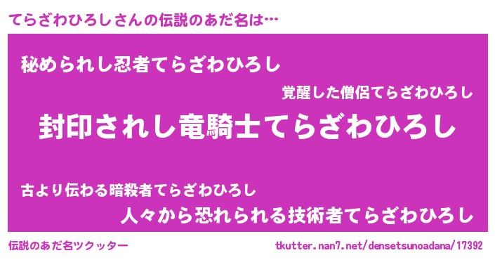 | 意味不明あだ名 | 『自称てらざわひろし』 |