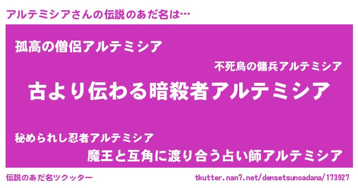 | ヘコむあだ名 | 『アルテミシア(笑)』『アル太郎』 |