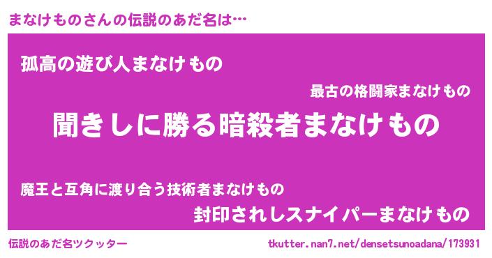 | 意味不明あだ名 | 『永久保存まなけもの』 |