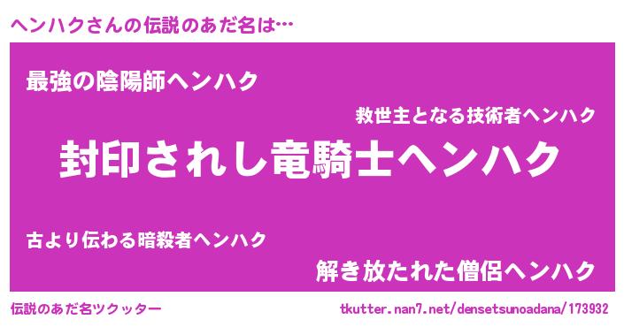 | 意味不明あだ名 | 『ペロリンヘンハク』『自称ヘンハク』 |