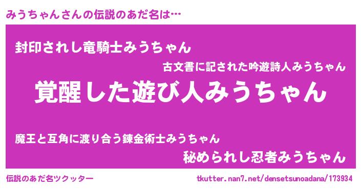 | ポケモン風あだ名 | 『ミウゴンZ』『ヒミウチャン』 |